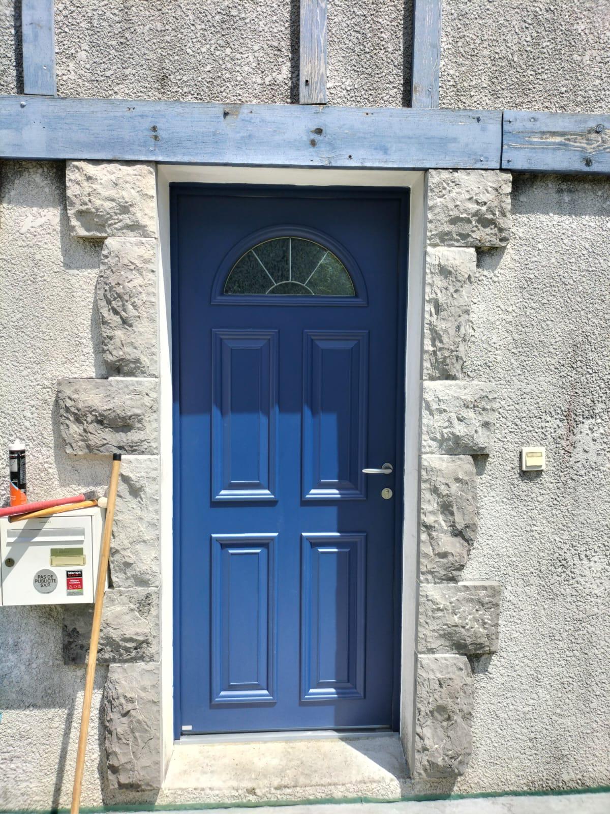 Le vantail est installé, les gonds et la quincaillerie ajustés afin de garantir un fonctionnement fluide et une fermeture sécurisée. Les joints périphériques sont posés, les habillages intérieurs et extérieurs mis en place, et l’ensemble est nettoyé.